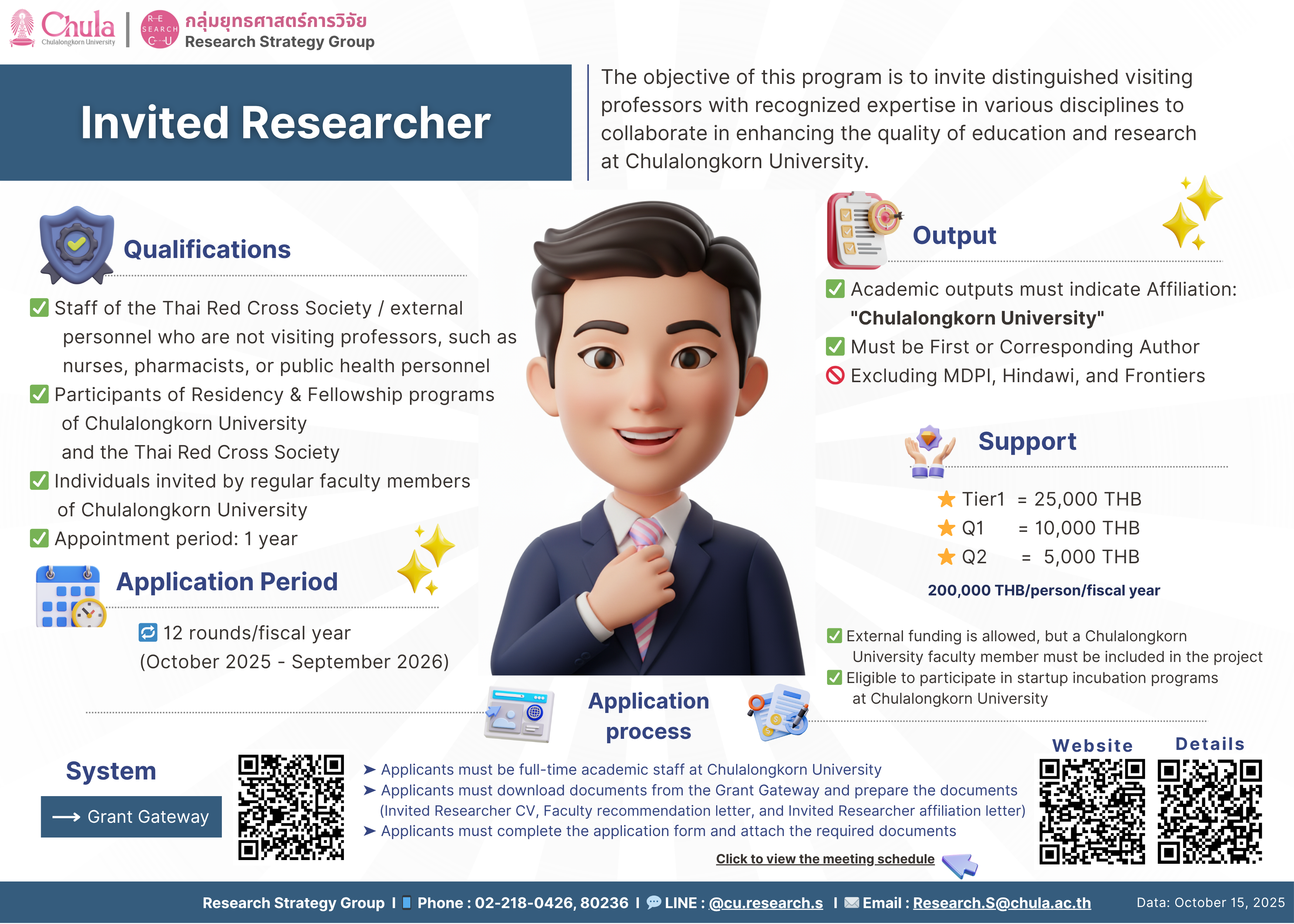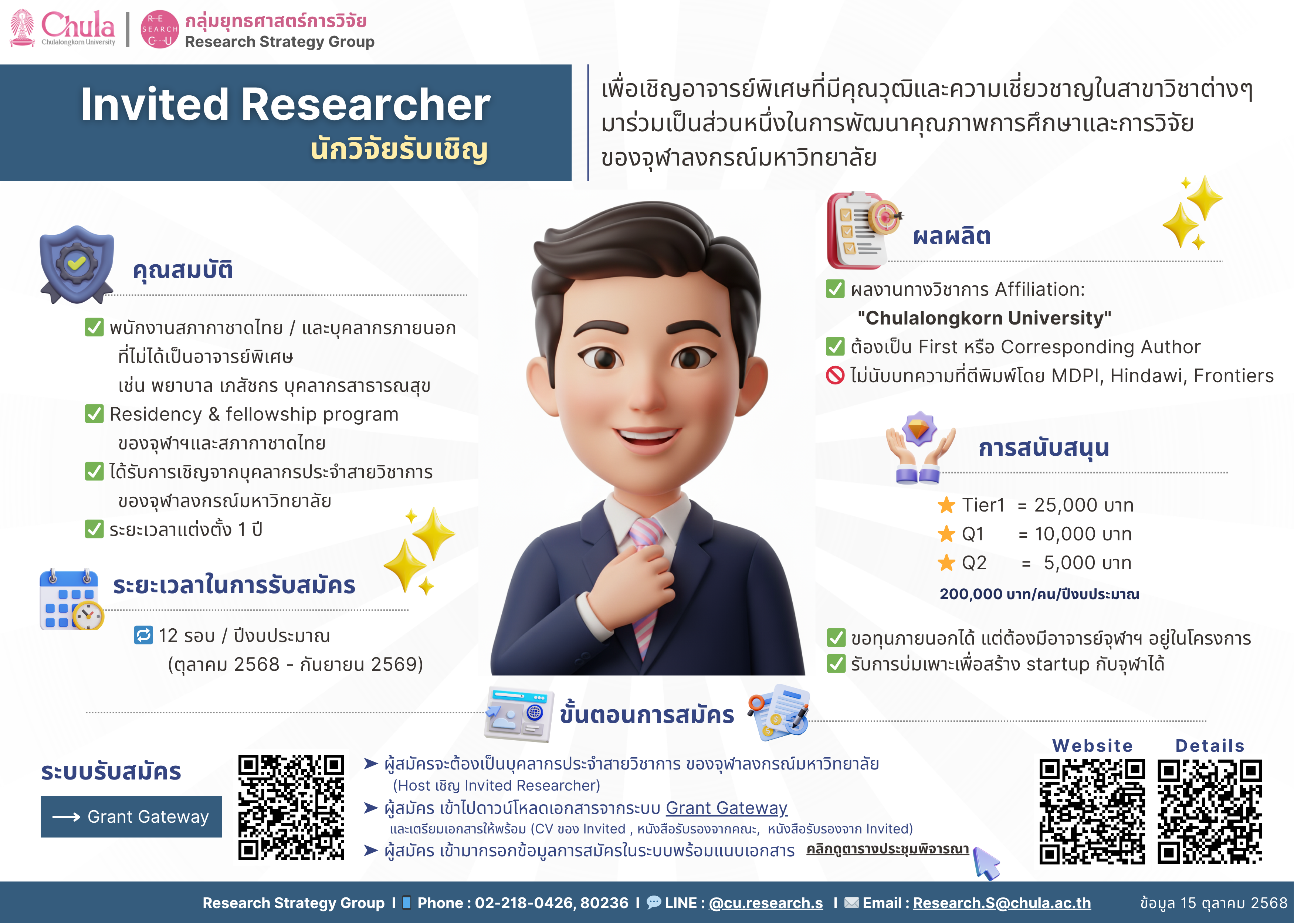 1.อนุญาตให้ รับตำแหน่ง Invited Researcher ที่จุฬาลงกรณ์มหาวิทยาลัยตามระยะเวลาแต่งตั้ง
